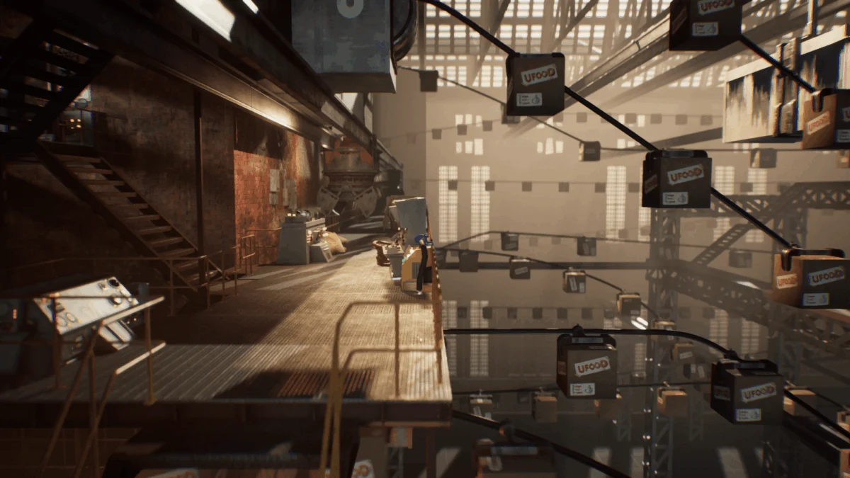 The mid-game focuses on the UFOOD Inc. facilities. Here, the level design shifts from natural organic shapes to rigid, mechanical structures. Players must navigate conveyor belts and automated assembly lines. This section has been noted for its "trial-and-error" design, where sudden environmental hazards can result in instant death. The checkpoints are described as generous, though some sequences require a high degree of patience and observation to complete without multiple restarts.